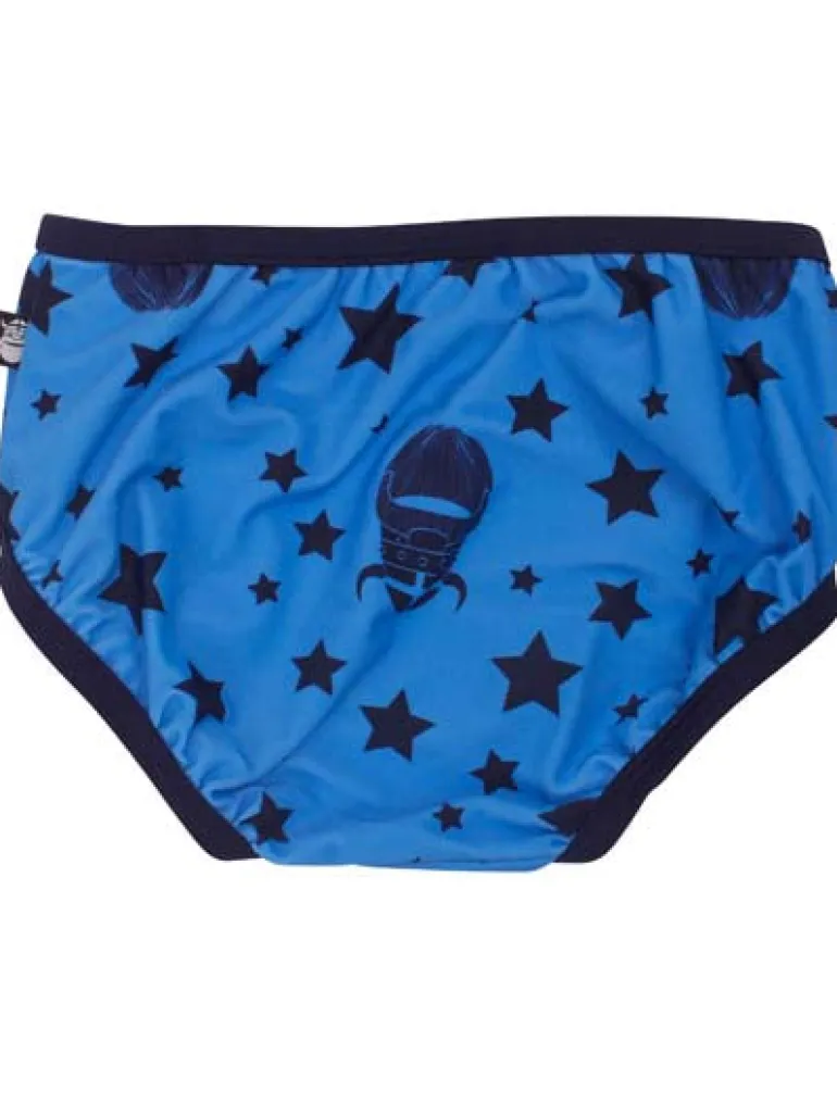 Fine badebukser velegnet til de første ture i svømmehallen for børn, der stadig bruger ble. Flotte farver med sejt allover starry print og med SPF 60 UV-beskyttelse, der beskyttter barnet mod solen.