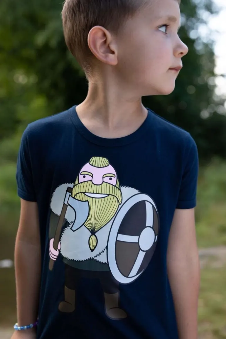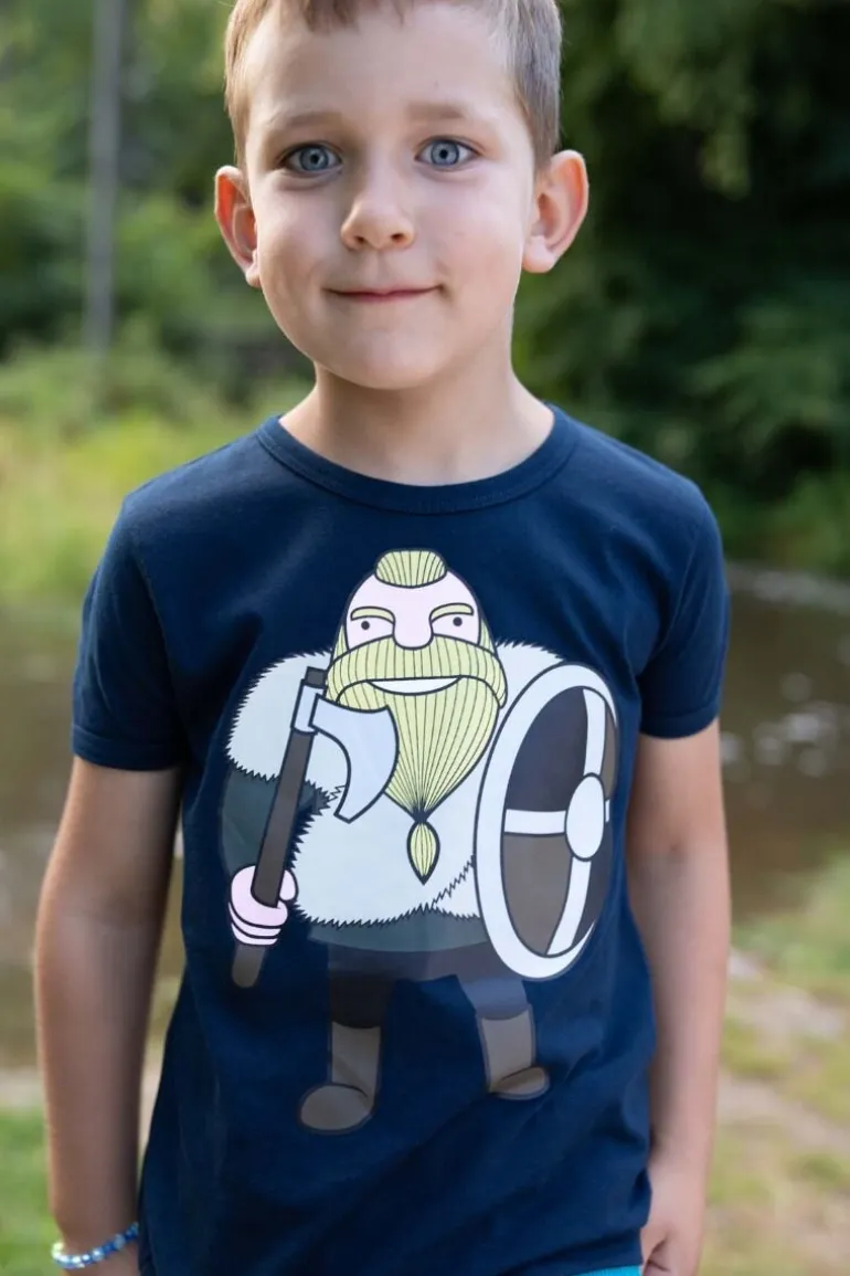 Bliv klar til sommer og leg med en behagelig t-shirt. Det sjove print med vikingen Harald sætter gang i fantasien.