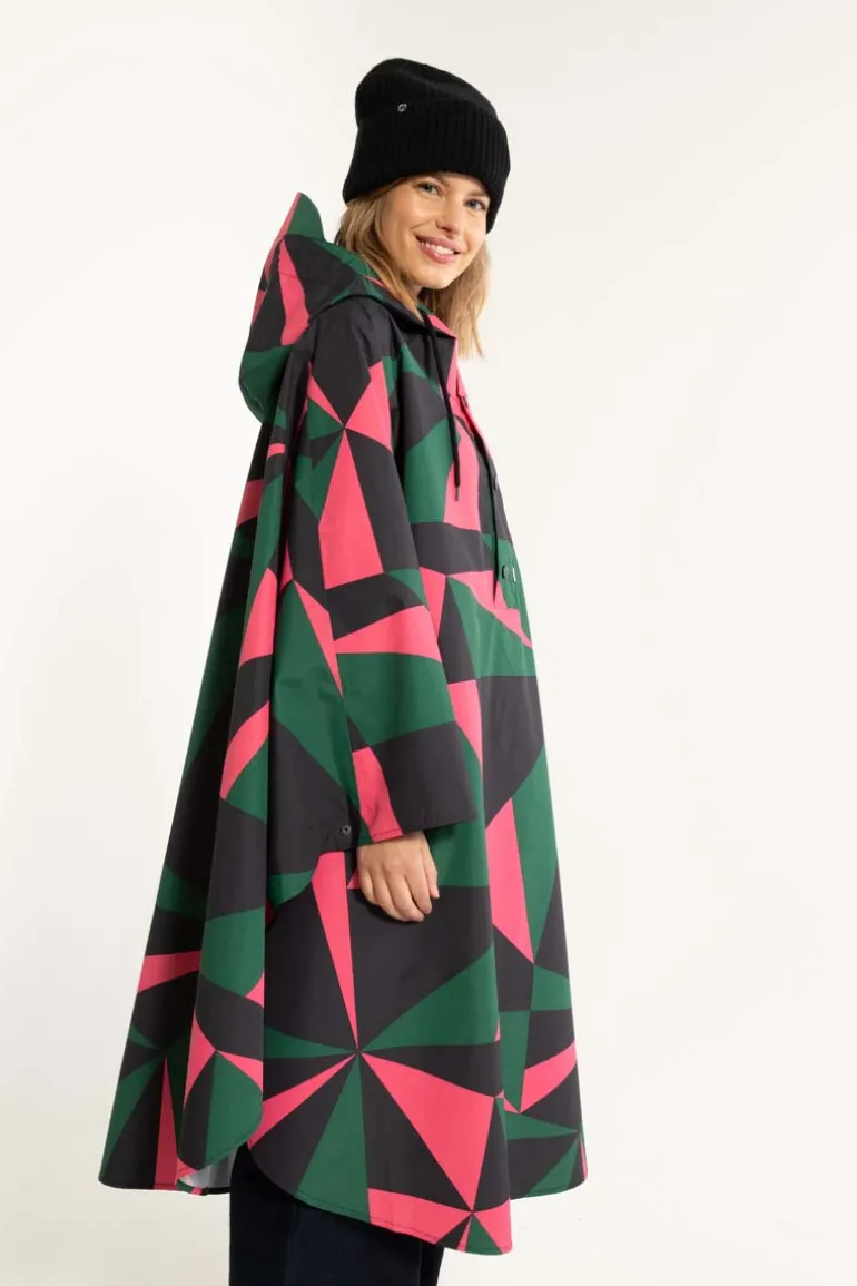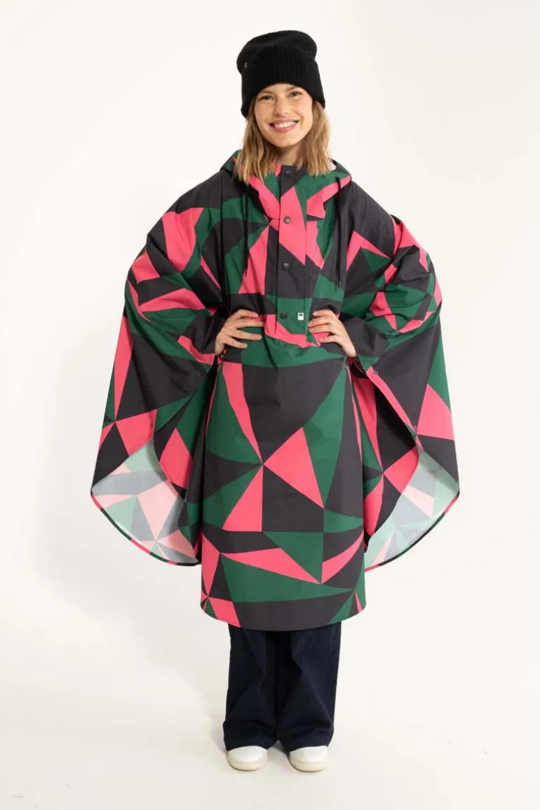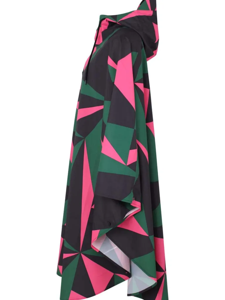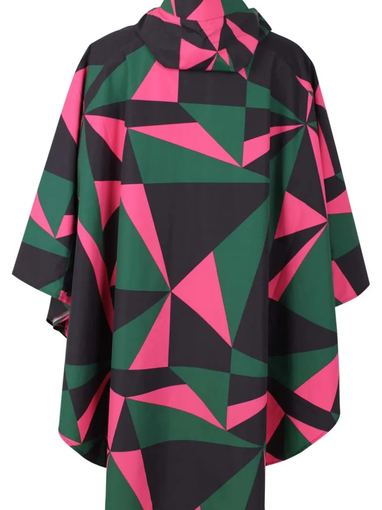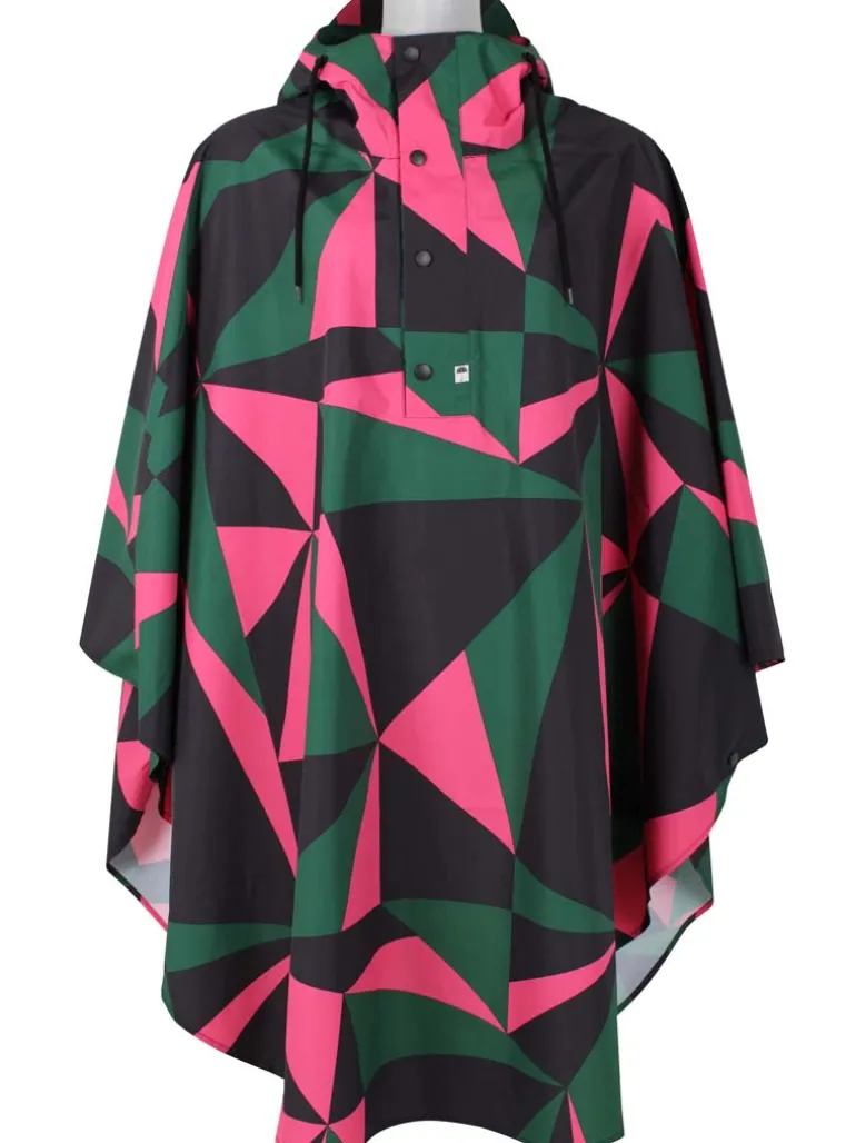 Regnponchoen er nem at tage på og holder vand og vind ude. De flotte farver og mønster skille sig ud fra mængden.