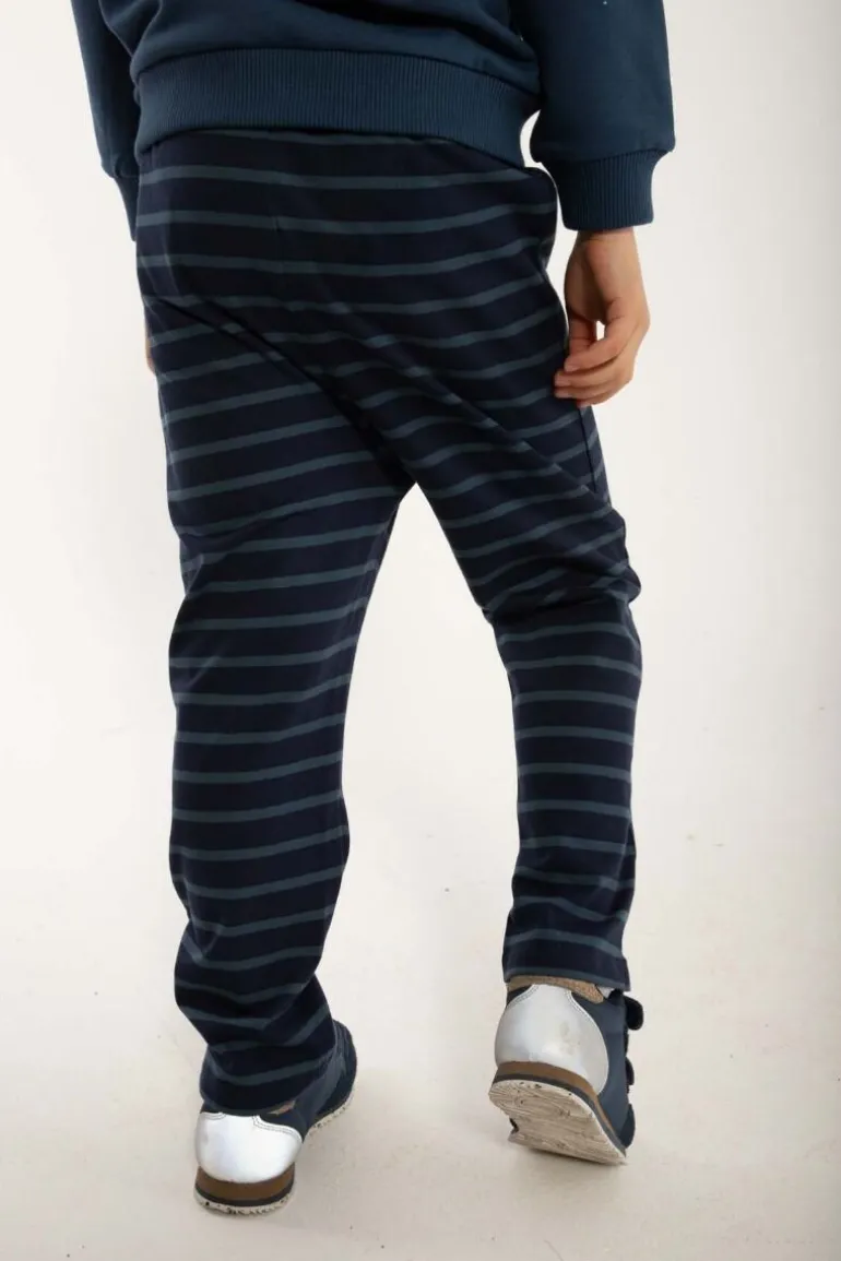 Disse fine, stribede bukser til børn er et must-have til basis garderoben! Bukserne er i det lækreste heavy cotton jersey, der får dem til at sidde flot og behageligt. Elastikkerne i livet får bukserne til at sidde til, uden at stramme. Bukserne er i et flot og klassisk design, og kan både bruges til hverdag og hjemlig hygge. Kombiner dem med en af vores flotte hoodies for et skønt hjemmesæt.