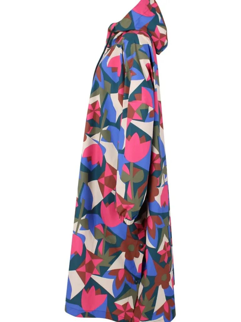 Ærmerne afsluttes med elastik, så du ikke får vind ind i ærmerne, når du f.eks. cykler. Hætten kan snøres ind. Skønt print.