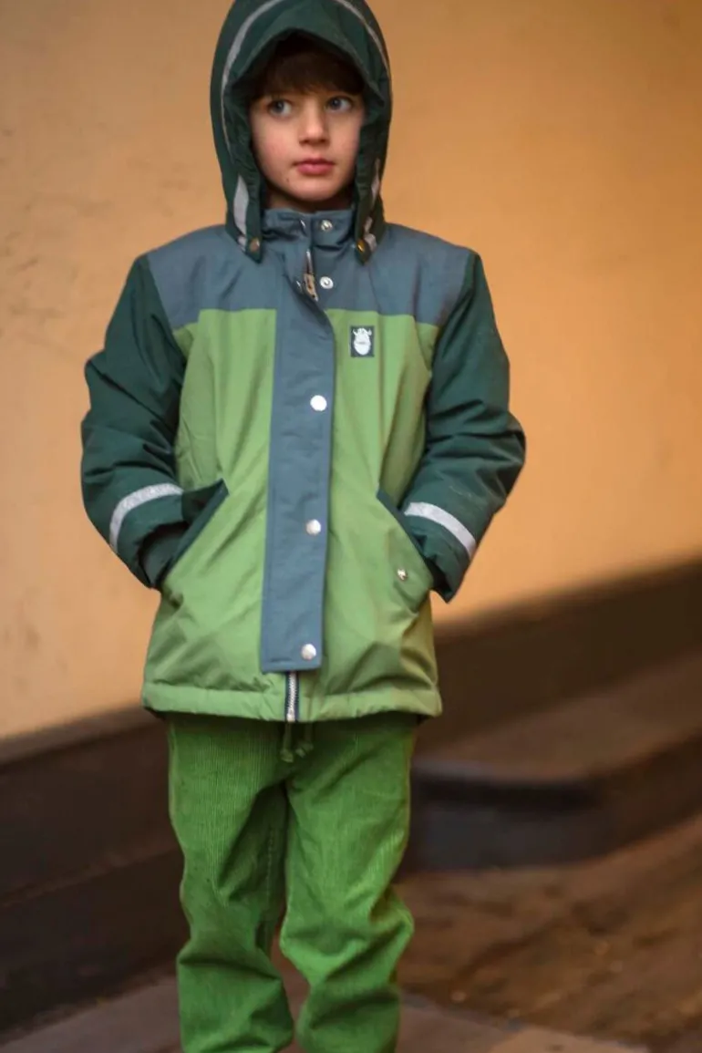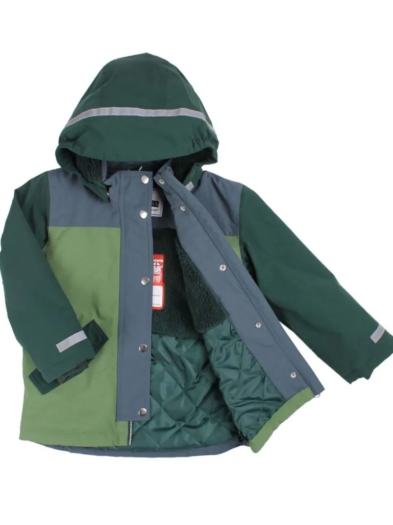 Vinterjakken er vindtæt og vandtæt (5.000 mm vandtæthed) og har tapede sømme samt høj åndbarhed. Jakken har en meget fin pasform og mange detaljer, som blandt andet en aftagelig hætte for barnets sikkerhed. Jakken har bred rib ved ærmerne så vinden holdes ude, og søde lommer i siderne. Jakken er i en fantastisk slidstærk kvalitet, så den holder til mange timers vild leg udenfor.