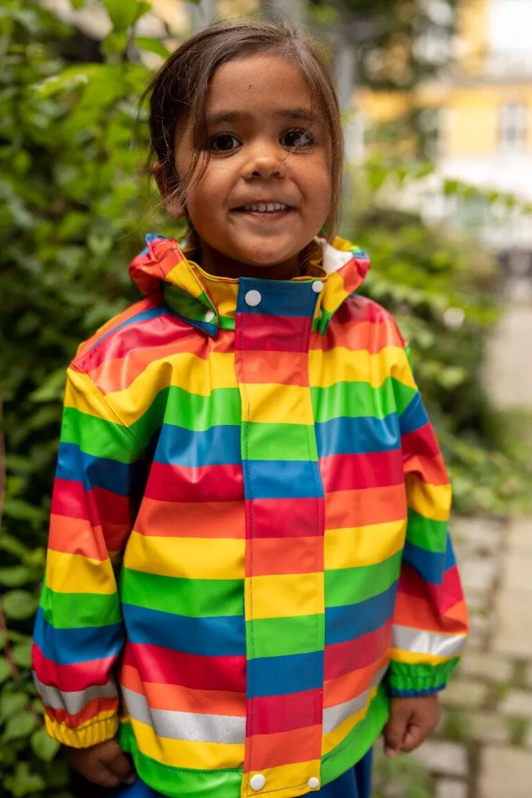 Danefæs populære og funktionelle regntøj i en super lækker kvalitet. Regnsættet er lavet i et særdeles vind- og vandtæt materiale (3.000 mm vandtæthed) og har tapede sømme, så det kan modstå det danske vejr. Slidstærkt så sættet kan holde til mange timers vild leg. Regnjakken har aftagelig hætte for barnets sikkerhed og dobbeltlynende lynlås, som ligeledes er vandtæt. Regnbukserne har seler til og med 4 år, derefter er det almindelige regnbukser med elastik i taljen.