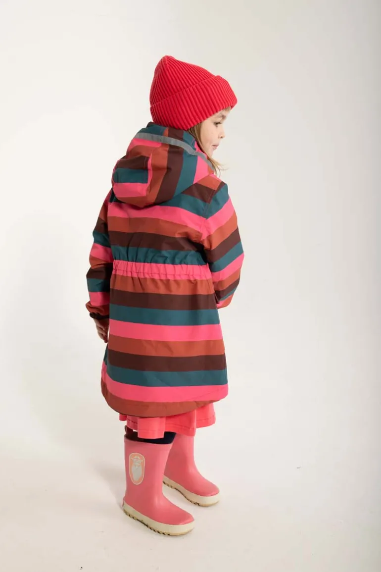 Danemma er en super sød og klassisk Danefæ vinterjakke med striber. Jakken er vind- og vandtæt (5.000 mm) og har tapede sømme samt en høj åndbarhed. Jakken har virkelig fin pasform, og mange søde detaljer som f.eks. den aftagelige hætte, og det lille Danefæ-logo ved lommen. De to store lommer kan lukkes med trykknapper, og er perfekte til et par vanter eller en lille hue. Kvaliteten af jakken er fantastisk slidstærk, hvilket gør den perfekt til mange timers sjov leg udenfor.