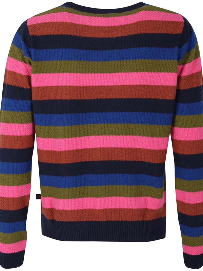 Pearly sweater er en rigtig sød og klassisk sweater i en lækker perlestrikket bomuldskvalitet. Den har et flot og farverigt stribet mønster. Ærmerne afsluttes med en ribstrikket kant. Kombiner den med et par Liseleje pants eller vores skønne nederdele for et flot hverdagsoutfit.
