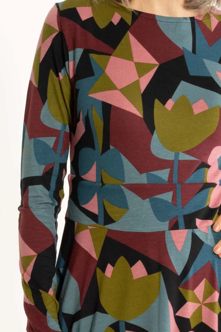 Snittet sidder flot på alle kropstyper. Den brede halsudskæring fremhæver kravebenene samtidig med, at det brede taljestykke fremhæver figuren, hvilket givet et super flot og feminint look, der passer godt til de fleste kropstyper. Det “under-knælange” skørt falder elegant. Kombinationen af den smukke model, det lækre materiale og de flotte mønstre og farver gør Sigrid Dress til en must-have kjole i garderoben.