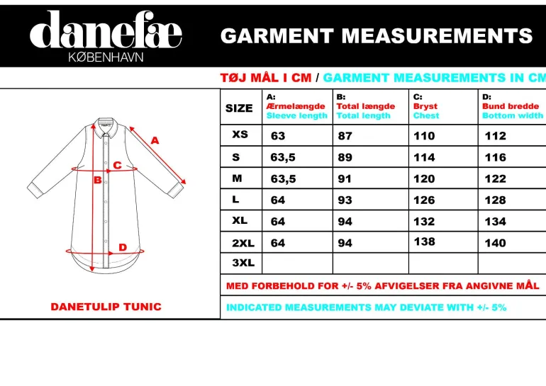 Danetulip Tunika er en skjorte tunika med lange ærmer, i en skøn blød og strækbar bomuldspoplin. Bomuldspoplin er et let åndbart stof der føles køligt og blødt mod huden. Samtidig er det super slidstærkt, holder formen og krøller ikke så let.