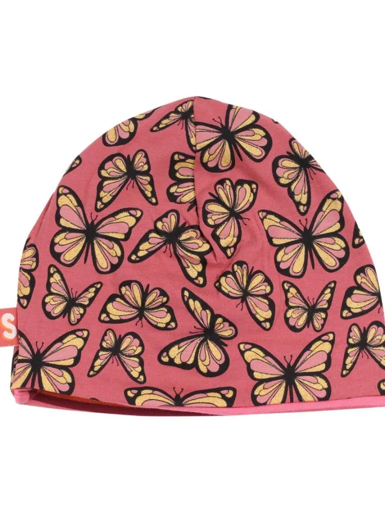 Danefæ Dyrloeve Beanie Old Rose FLUTTER/STRIPE Reversible | Huer Og Vanter