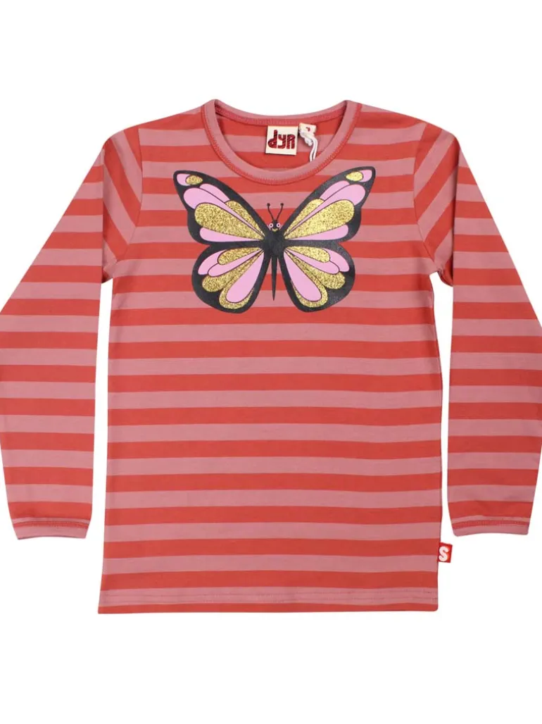 Danefæ Dyrroar T AOP/STRIB Antique Rose/Swedish Red SOMMERFUGL | Børn Bluser