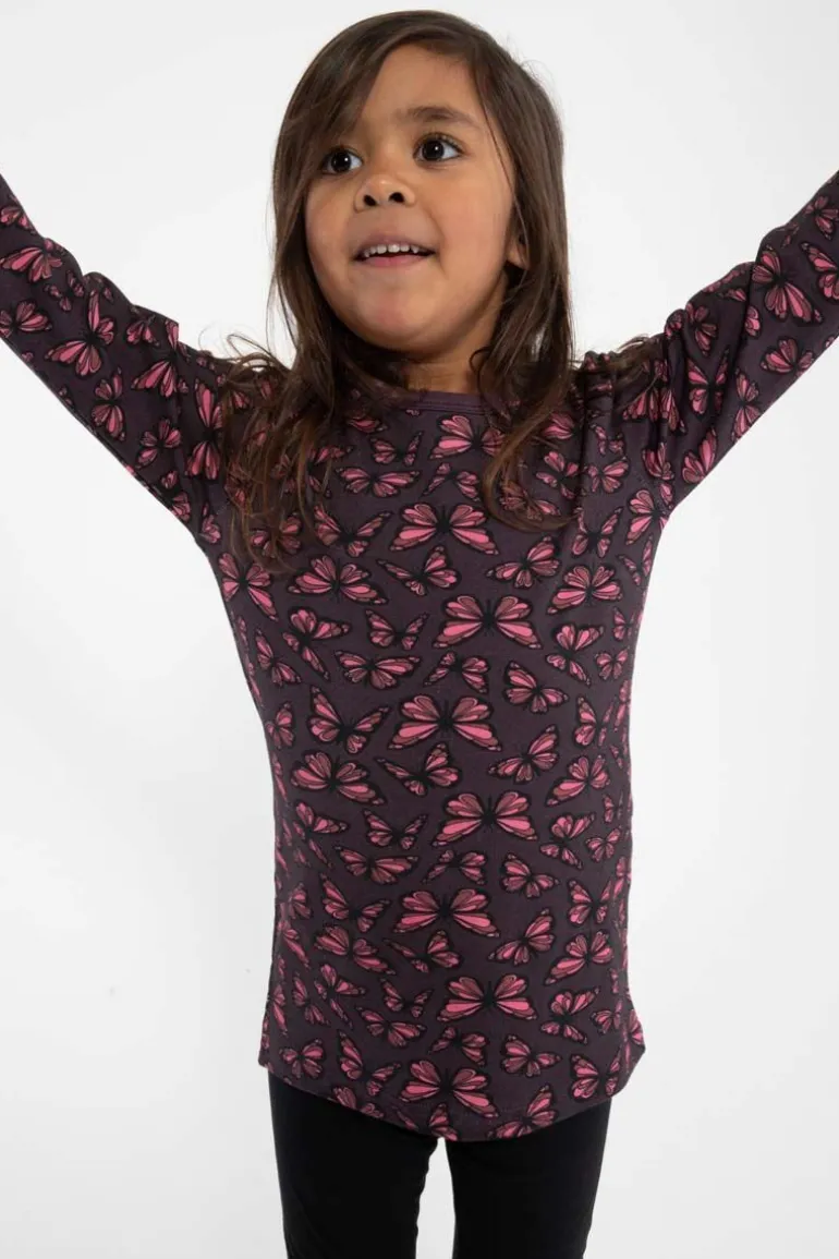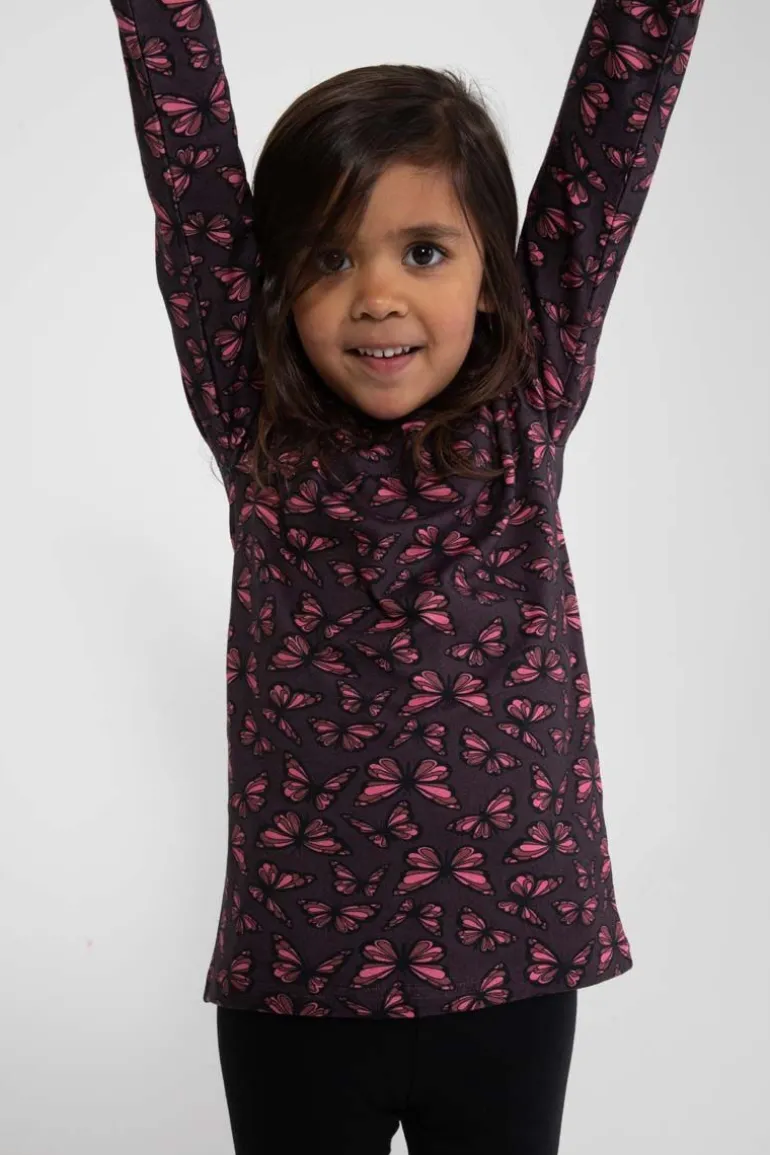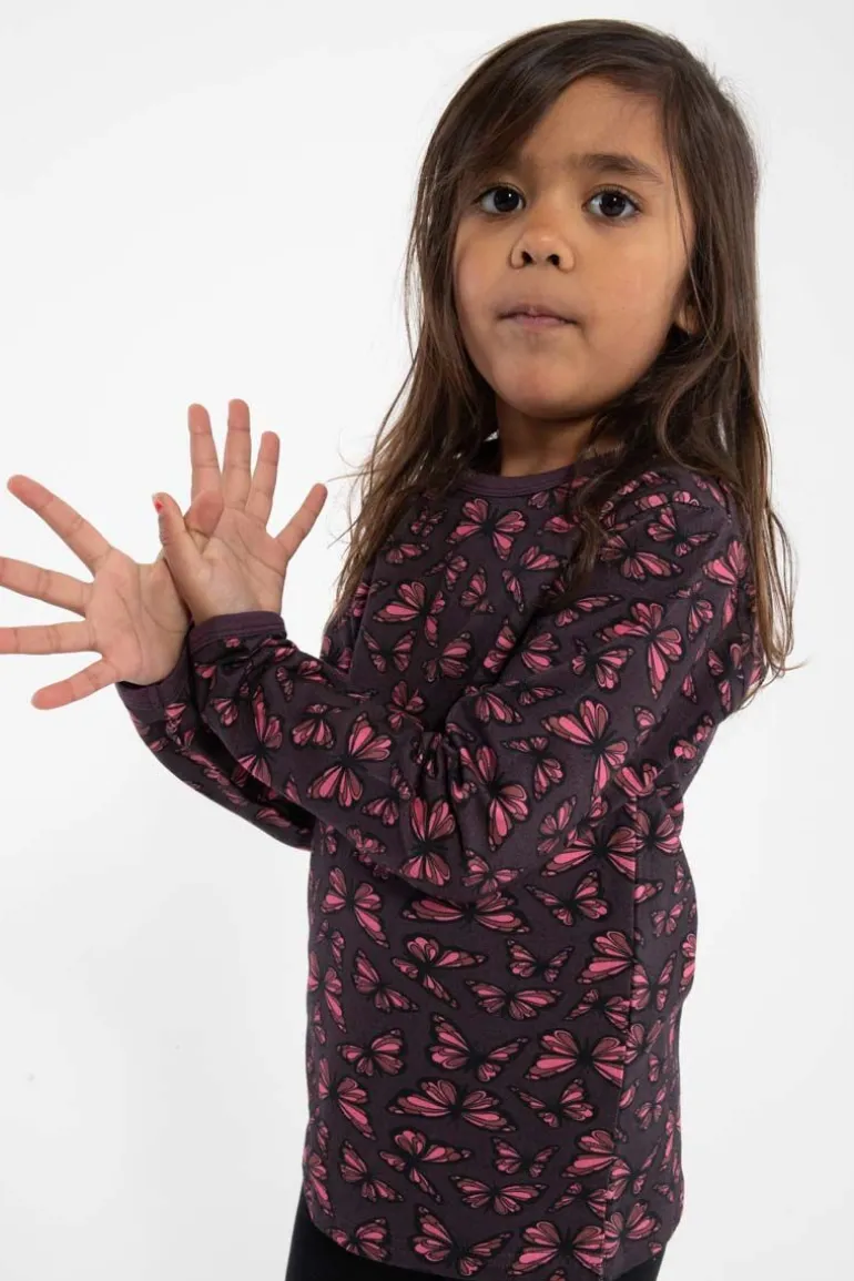Skøn bluse fra DYR med sommerfugle, som sætter gang i fantasien og giver plads til masser af sjov leg. Lavet i bløde materialer, så blusen er dejlig at have på. Materialet består af 95% bomuld (180 gram) og 5 % elastan.