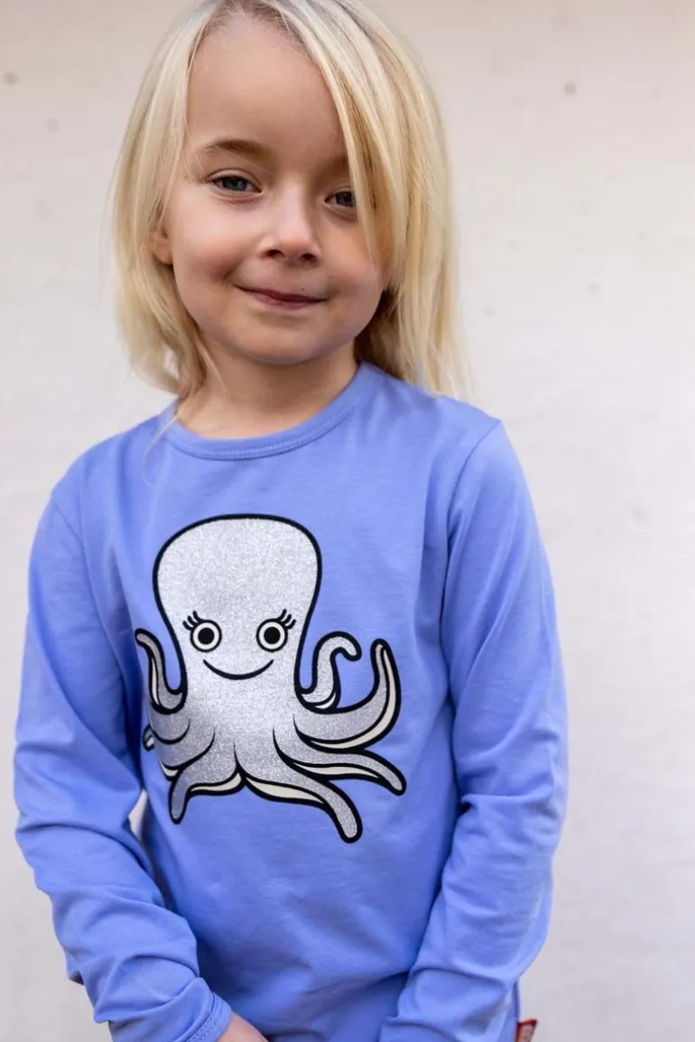 Skøn bluse fra DYR med en fin blæksprutte, som sætter gang i fantasien og giver plads til masser af sjov leg. Lavet i bløde materialer, så blusen er dejlig at have på. Materialet består af 95% bomuld (180 gram) og 5 % elastan.