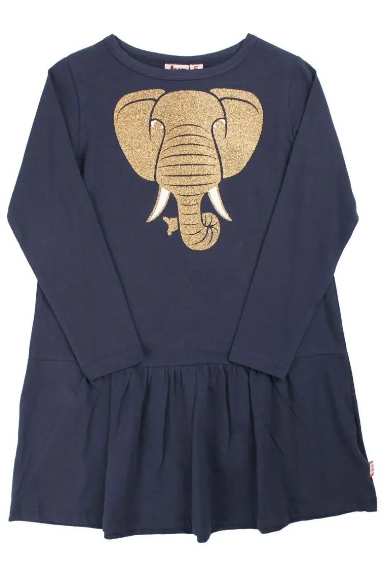 Danefæ Dyrzanzi Dress LS Dk Navy ELEFANT GOLD GLITTER | Børn Kjoler