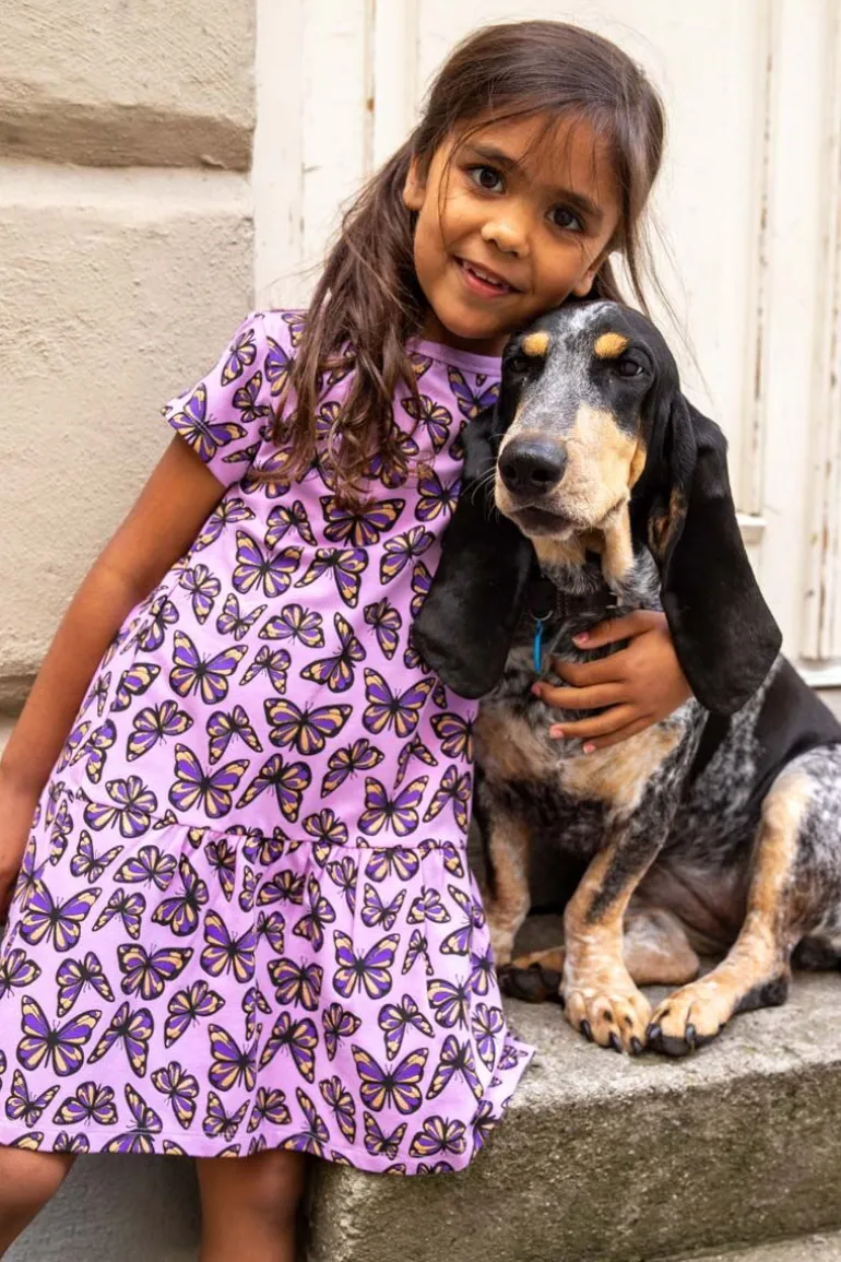 Danefæ Dyrzanzi SS Dress AOP/STRIB Soft Viola FLUTTER | Børn Kjoler
