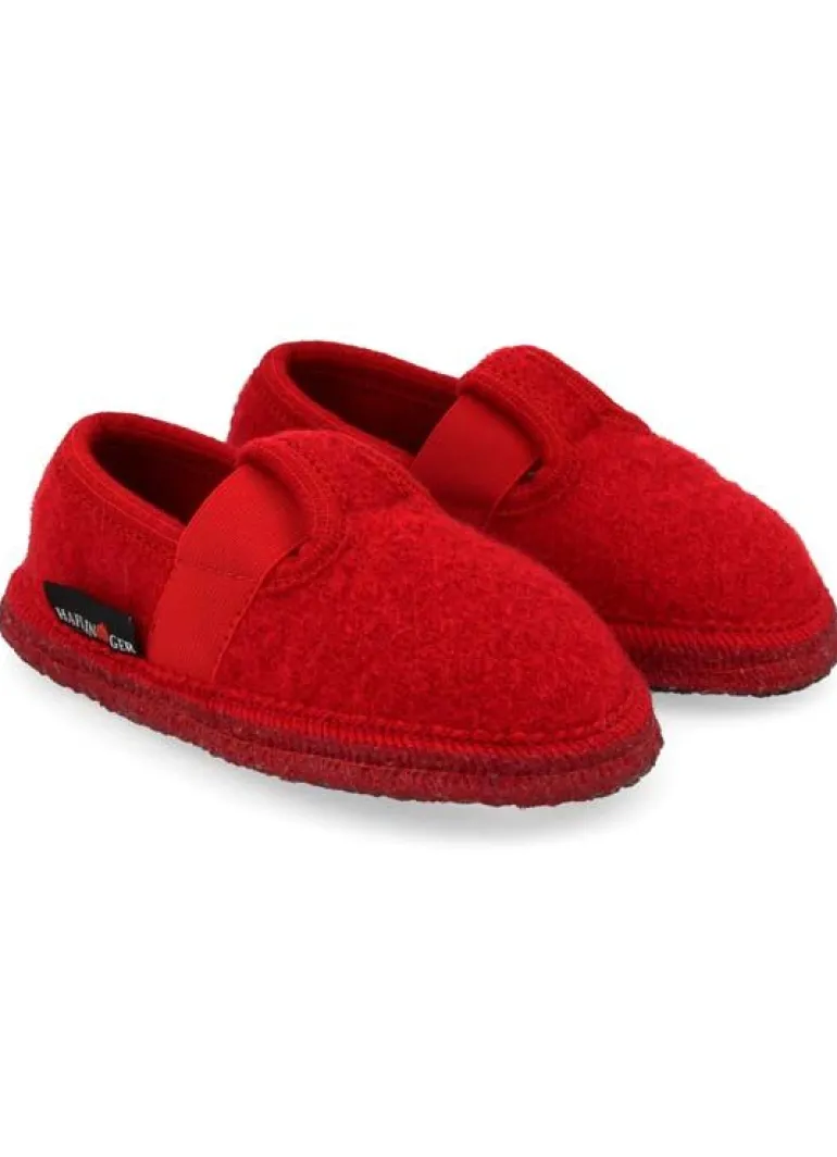 Dejligt varme klassiske hjemmesko til indehygge, vuggestue eller børnehave. Dejligt varme og super god pasform. 100% uld, så fødderne holdes varme, men stadig kan ånde. 10mm tyk latexbetrukket filtsål, så skoene står fast og ikke suger vand.