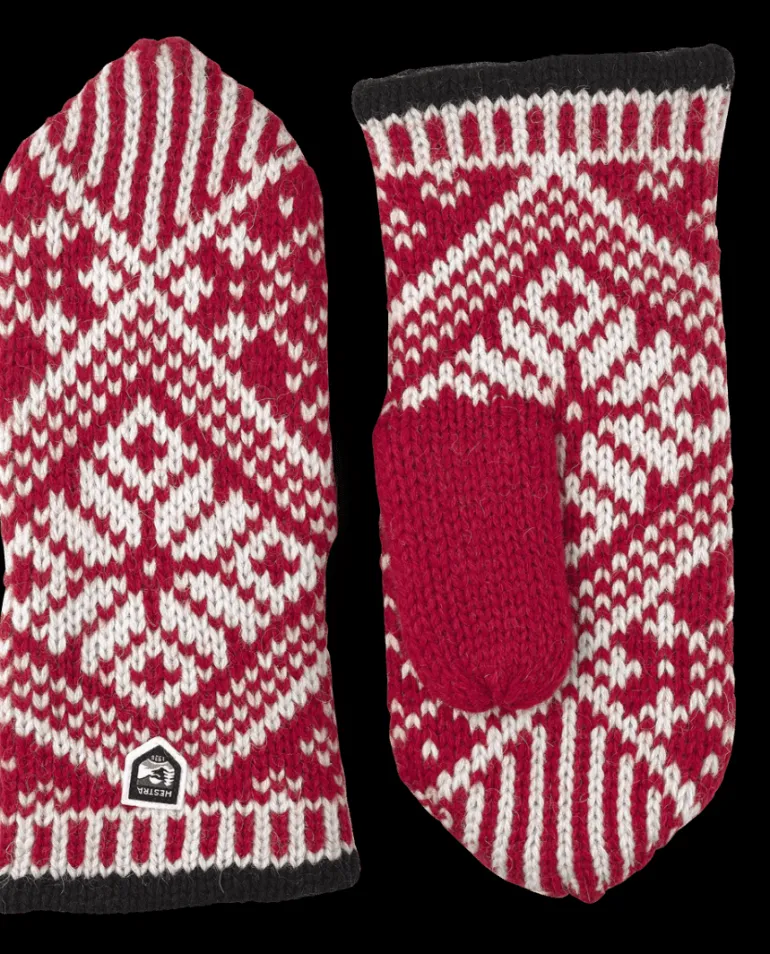 Danefæ Hestra Nordic Wool Mittens Red/Off White | Dame Vanter