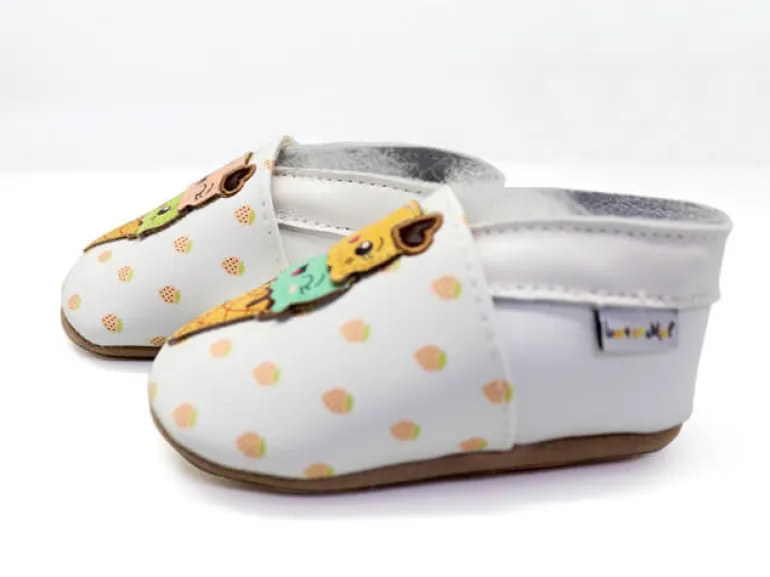 Vi kunne slet ikke stå for disse søde futter fra franske Lait et Miel. Den skønneste bløde læder, som sidder perfekt på foden. Sålen er af ruskind. Ruskindssålens fleksibilitet gør en gåtur, så tæt på en barfodet fornemmelse, som muligt. Dette fremmer en god udvikling af rygsøjlen og en god udvikling af balancefølelsen. Samtidig beskytter ruskindssålen mod kulde og ujævnheder på turen. Elastikken ved anklen, gør det nemt at tage skoene af og på selv, og får skoene til at sidde godt fast på fødderne.