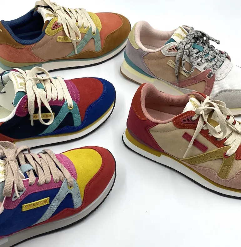 Danefæ M.MOUSTACHE André Running Sneakers Suede Bleu Rouge Orange | Dame Sneakers