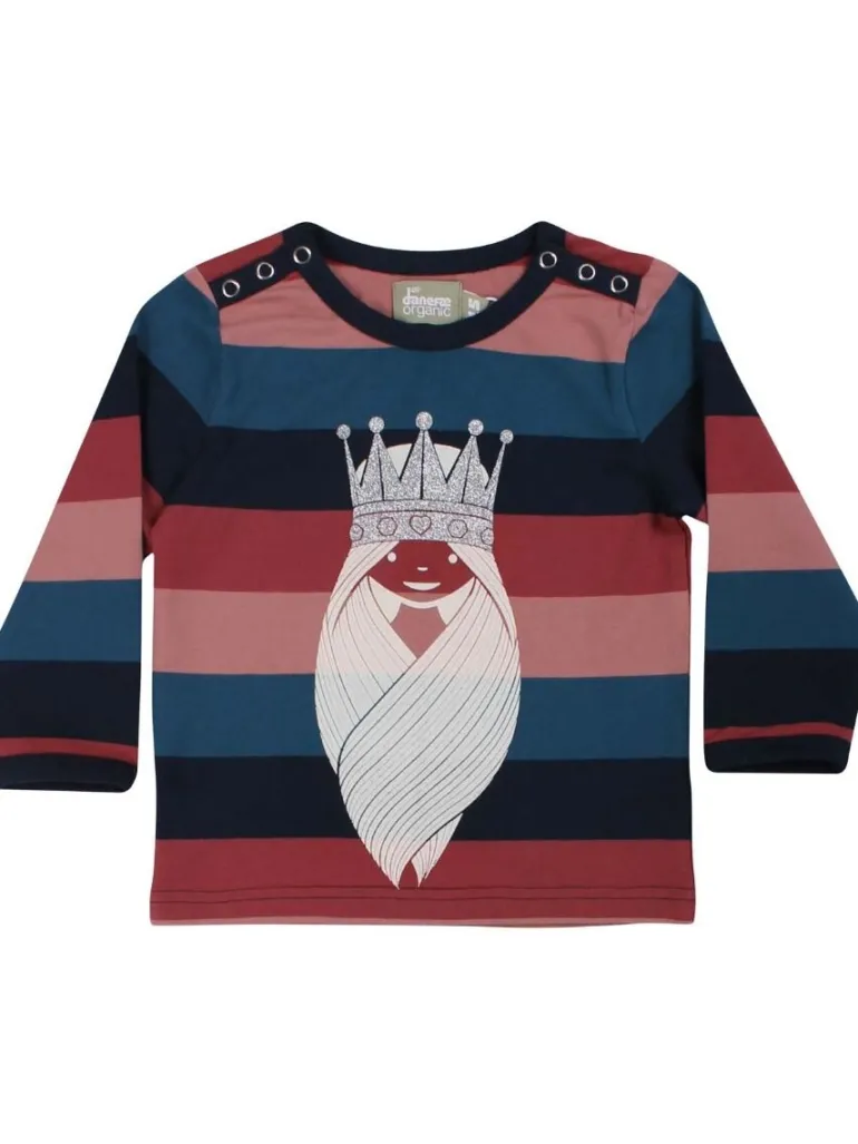 Parsley LS er en langærmet bluse med de flotteste farver. Blusen er lavet af en super lækker, økologisk bomuldsblanding, der føles skøn at have på. Trykknapperne på begge skuldre, gør det nemt at få blusen på og af barnet. Det store print på maven er en sikker favorit. Parsley LS er lavet af det super bløde materiale Organic 210 gr. Brush CL, der består af 95 % økologisk bomuld og 5 % elastan. Elastanen gør materialet strækbart og dermed endnu dejligere at have på. Børnetøj fra Danefæ er tøj, som børn forstår. De sjove prints og flotte farver taler til børnene. Alt vores tøj er produceret ud fra tre kerneværdier: kvalitet, omtanke og ansvarlighed. Kvalitet betyder, at der skal være plads til leg og bevægelse, samt at farve, form og tryk kan holde vask efter vask efter vask. Omtanke betyder, at vi har meget klare standarder for brugen af kemikalier samt for de sikkerhedskrav vores produkter skal leve op til. Alle vores produkter er fri for fluorstoffer og andre skadelige kemikalier. Ansvarlighed betyder at alle vores ting bliver produceret under forhold, vi kan stå inde for. Vi producerer kun hos BSCI- certificerede producenter, som vi besøger årligt.