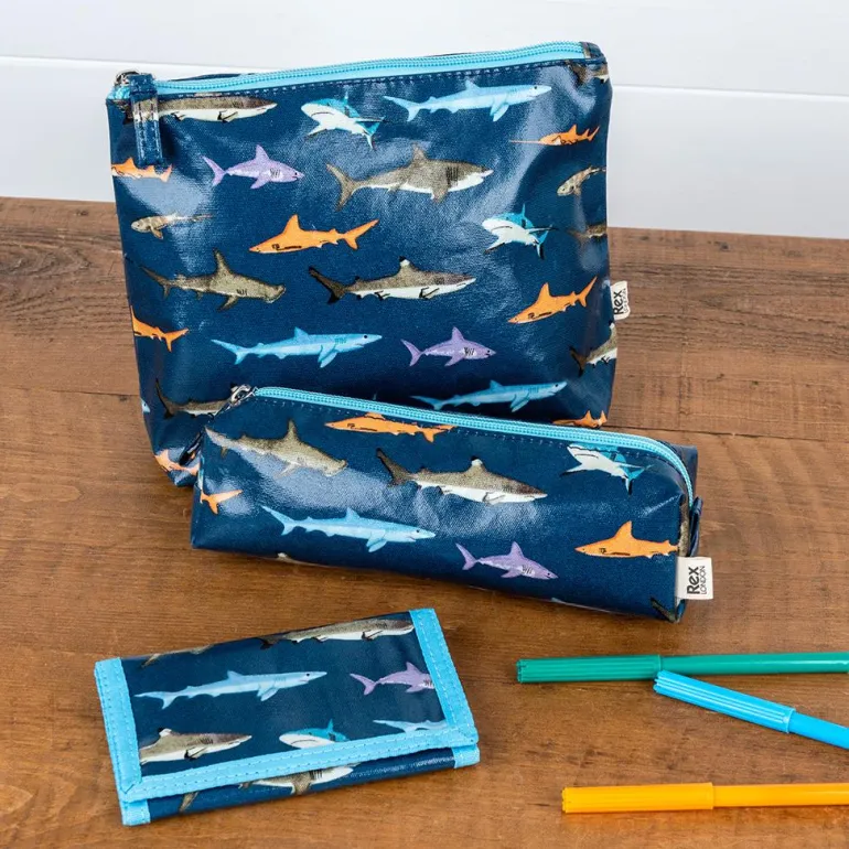 Brighten up your little one’s travel bag with this children’s shark washbag, which is a great size to fit toiletries and everyday essentials for holidays and sleepovers. Made from waterproof oilcloth, it’s easy to wipe down clean. Matching Sharks accessories are also available.Features:Easy to clean, strong and waterproof oilcloth exteriorZip fasteningSplashproof interior liningDimensions: 21 cm × 7.5 cm × 18 cm
