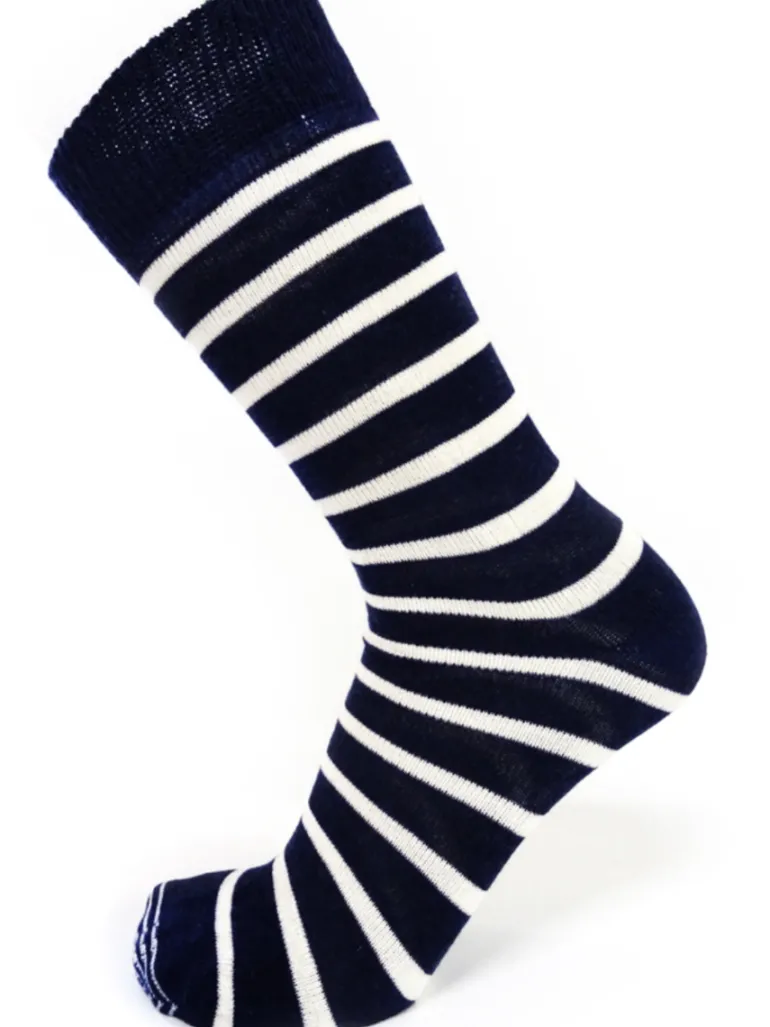 Danefæ WOOLWEAR Uldsokker Dressed Navy/White stripes nr.26 | Dame Strømper
