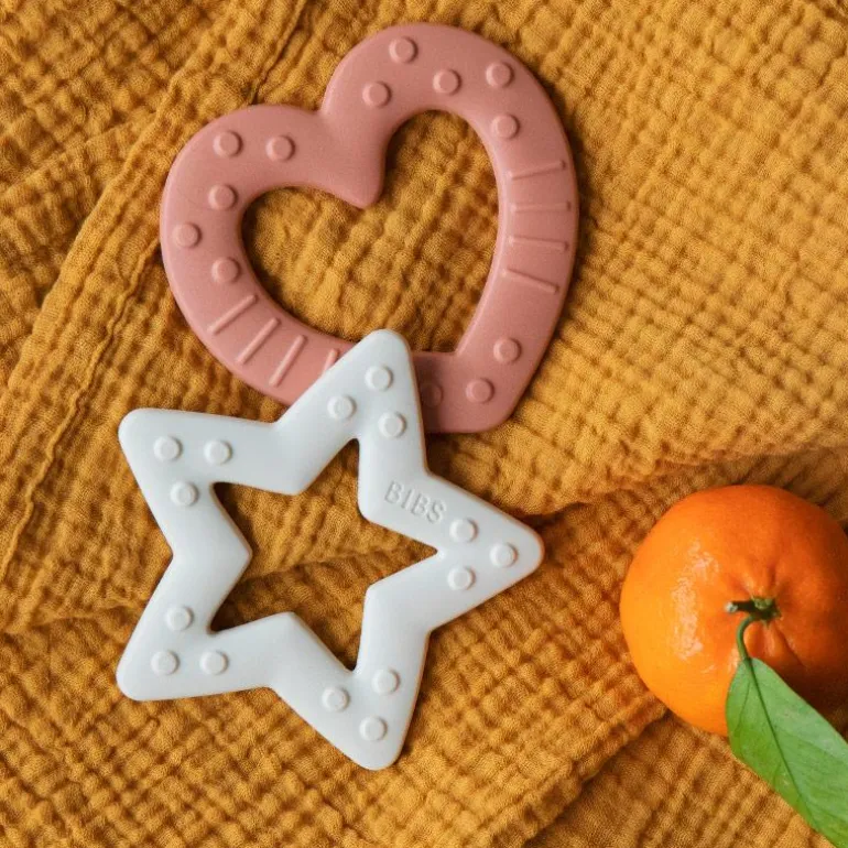 Baby Bitie er vores nye bidering, perfekt til dit barns små hænder og kløende gummer. Bideringen kommer i to former: En stjerne og et hjerte.