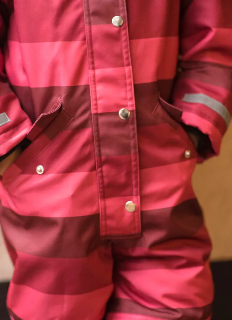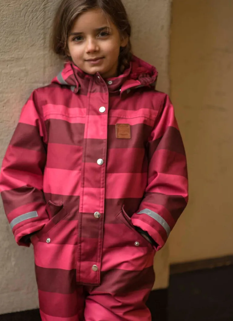 Lækker flyverdragt i skøn farve. Dragten er lavet i slidstærkt materiale med varmt Termolite for. Flot facon og fine praktiske detaljer, blandt andet vindfang ved ærmerne og store lommer til lufferne. Refleksbånd ved ærmerne og benene. Flyverdragten er foret med blød fleece i hele overkroppen, i skødet og på numsen samt i hætten. Flyverdragten er vind- og vandafvtæt (5.000 mm). Meget velegnet til udendørsleg, da den holder barnet varmt. Også på skituren. Der er garanti for at blive set på legepladsen med de skønne farver! Flyverdragten er produceret under BSCI-certificerede forhold. Flourfri coating (Bionic Finish). Danefæs børnetøj indeholder ingen skadelige stoffer.