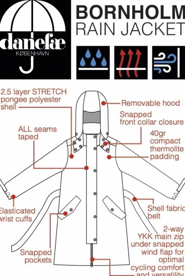 Bornholm vinterregnfrakken er en smuk og teknisk kvalitetsregnfrakke med et dejligt varmt foer til de koldere dage. En af vores absolutte bestsellere!