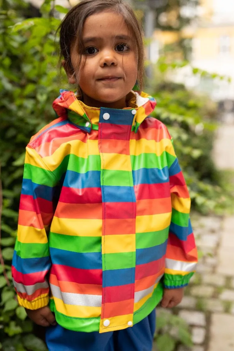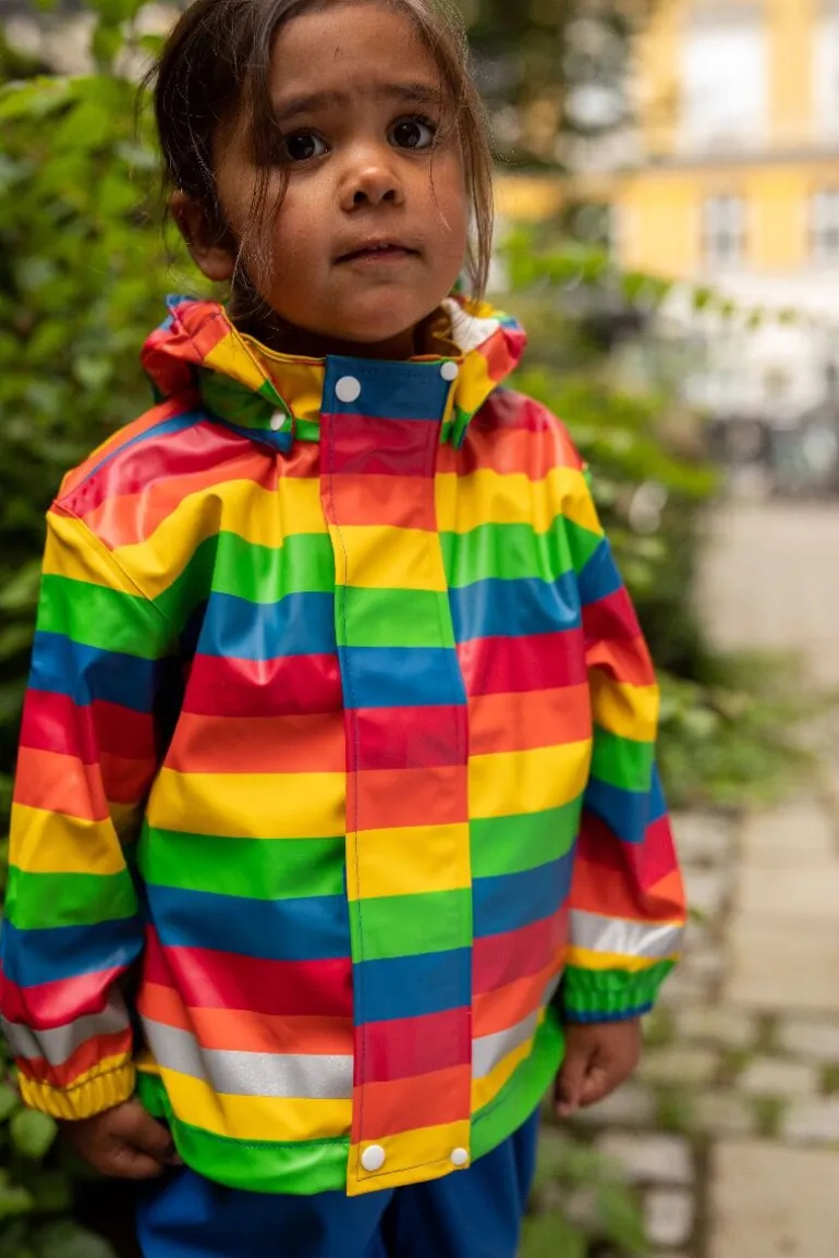 Danefæs populære og funktionelle regntøj i en super lækker kvalitet. Regnsættet er lavet i et særdeles vind- og vandtæt materiale (3.000 mm vandtæthed) og har tapede sømme, så det kan modstå det danske vejr. Slidstærkt så sættet kan holde til mange timers vild leg. Regnjakken har aftagelig hætte for barnets sikkerhed og dobbeltlynende lynlås, som ligeledes er vandtæt. Regnbukserne har seler til og med 4 år, derefter er det almindelige regnbukser med elastik i taljen.