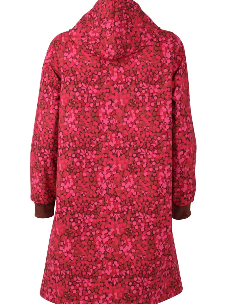 Softshellfrakken sidder elegant og feminint. Frakken har ribkant samt snøre ved hætten, således at hætten kan justeres for optimal pasform. Frakken har bred ribkant ved ærmerne, så vind og kulde holdes ude. Frakken har justerbar elastik nederst, således at den kan spændes tættere ind omkring benene, hvis ønsket. Frakken er inderst foret med en blød polarfleece, så den udover at være vindtæt også giver god varme til forår, efterår samt kølige sommeraftener. Frakken lukkes med en lynlås, som også kan lynes op nedefra, så man nemt kan cykle i frakken.
