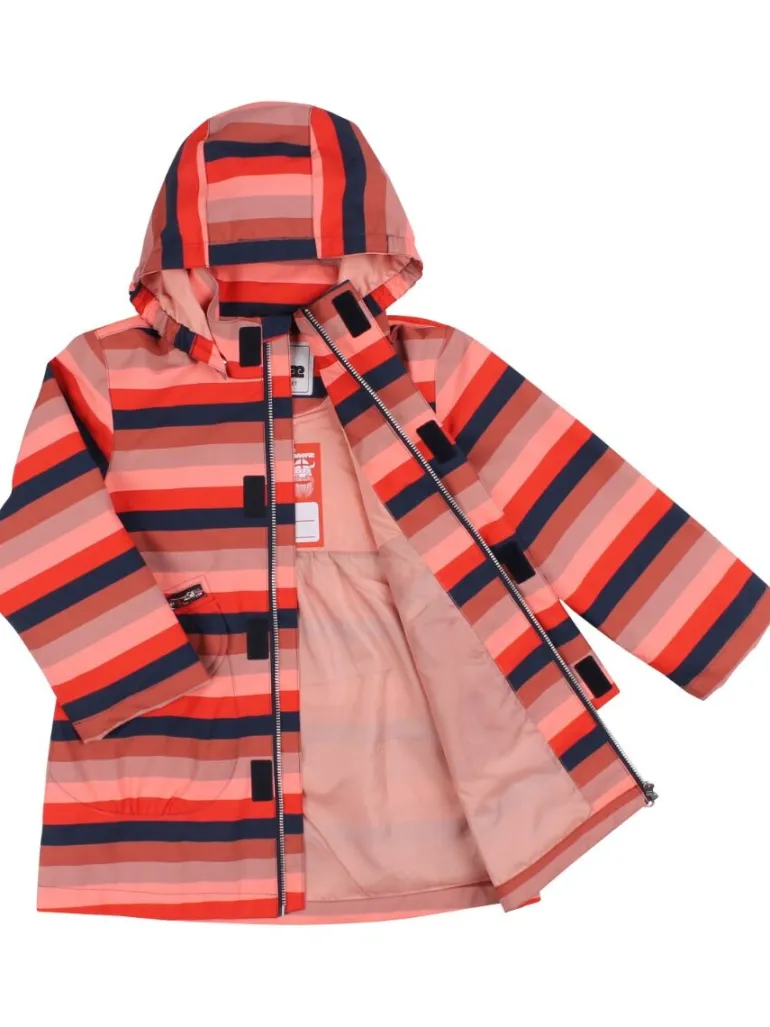 Kirstine midseasonjakken er en populær model iblandt pigerne. Jakken er i en superlækker kvalitet og har en meget flot pasform. Superfin model med lynlås foran og vindfang ved håndleddene, som holder vind og kulde ude. Søde rynk ved lommene samt aftagelig hætte og refleksbånd på ærmerne for barnets sikkerhed. Jakken går til knæet og har indvendigt justerbar elastik i taljen, så den sidder perfekt på enhver pige. Jakken er lavet i et meget vind- og vandtæt åndbart materiale (5.000 mm vandtæthed) og har tapede sømme, så de kan modstå det danske vejr. Danefæs børnetøj indeholder ingen skadelige stoffer. Flourfri coating (Bionic Finish).