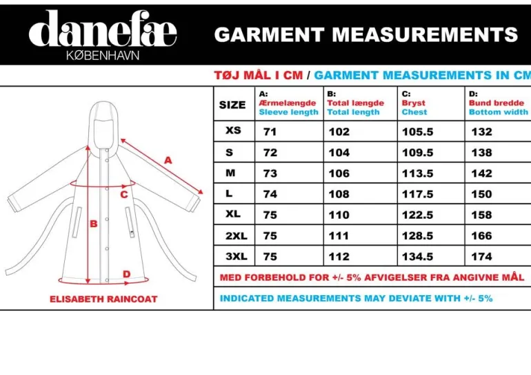Regnfrakken kan vaskes i maskine ved 30 grader. Generelt anbefales det, at man vasker overtøj mindst muligt.
