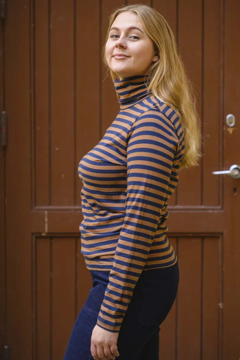 Danefæ Danemanna Modal Rollneck Tee Tobacco/Dark Navy | Dame Bluser