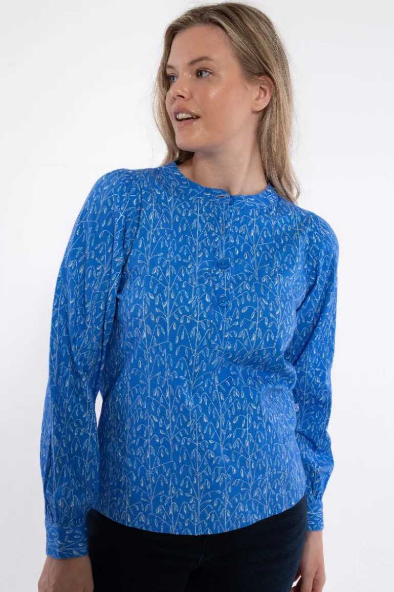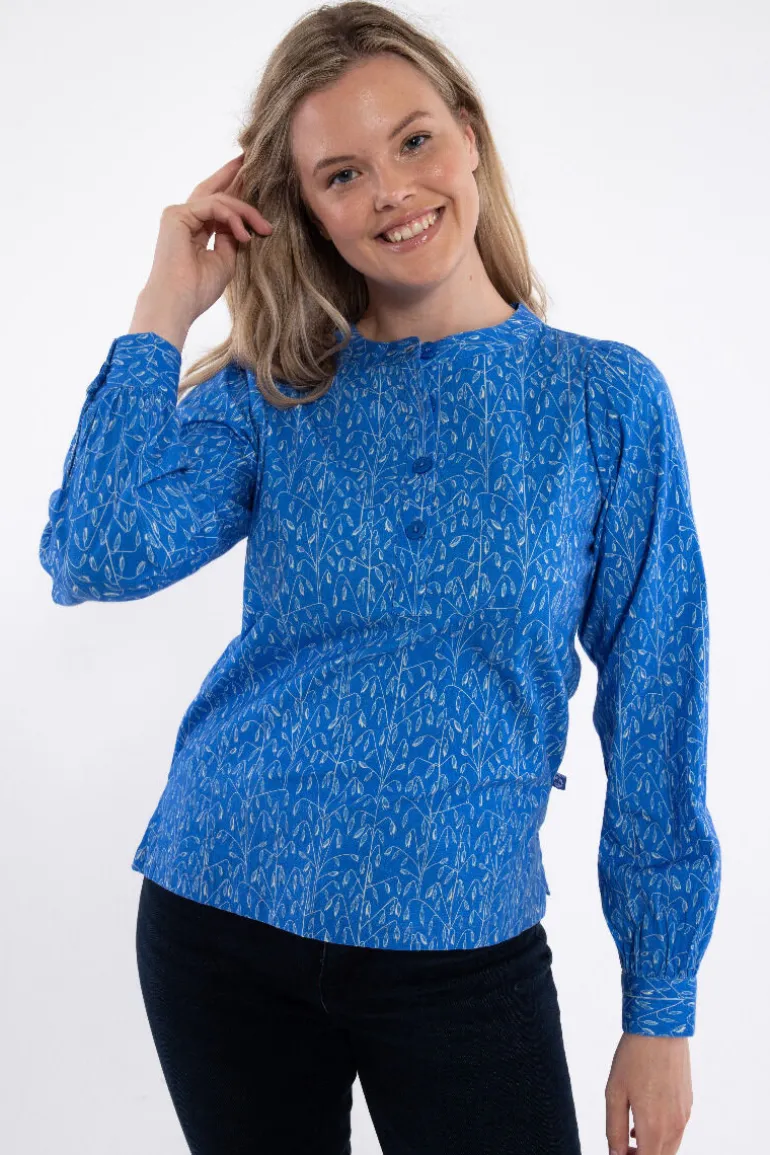 Rigtig sød skjortebluse i blødt bomuldsmateriale med stretch og med stolpelukning. Feminin og nostalgisk. Match med vores nederdele i fløjl og denim eller et par jeans.