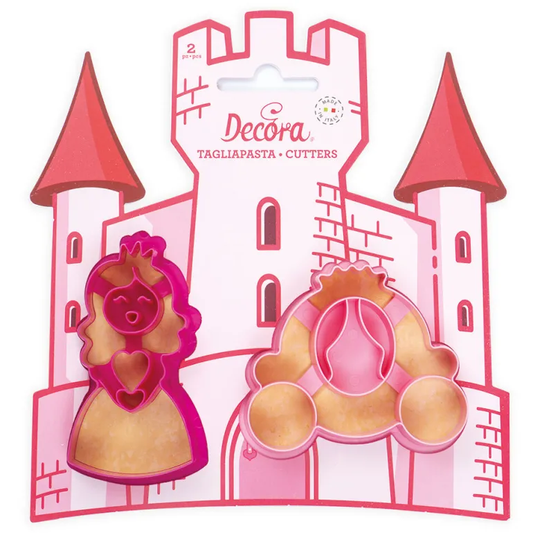 Rigtig fint udstikker sæt der har form som en prinsesse samt en karet. Formene er lavet i plast.
