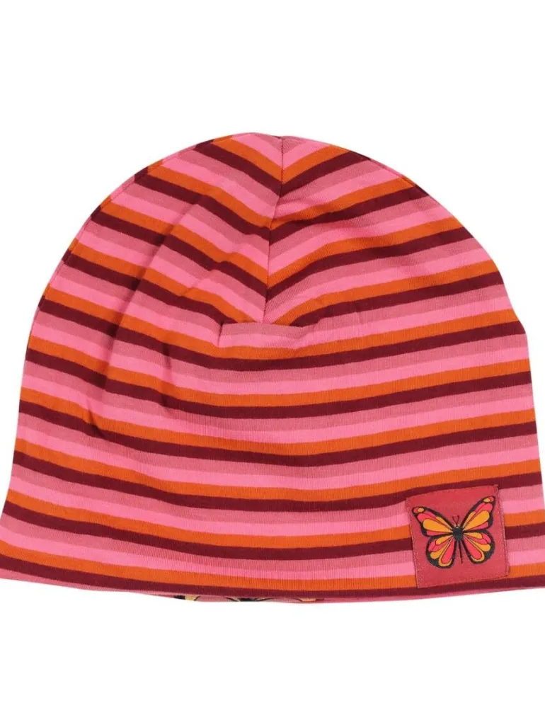 Danefæ Dyrloeve Beanie Old Rose FLUTTER/STRIPE Reversible | Huer Og Vanter