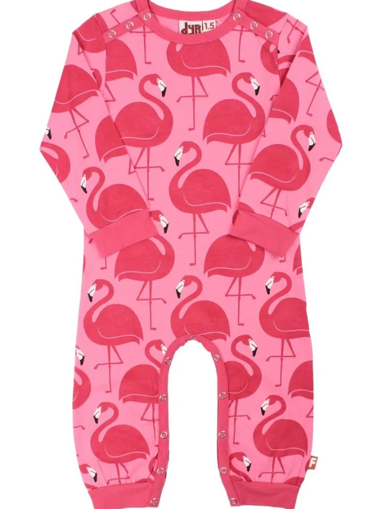 Skøn heldragt fra DYR med flamingoer, som sætter gang i fantasien og giver plads til masser af sjov leg.