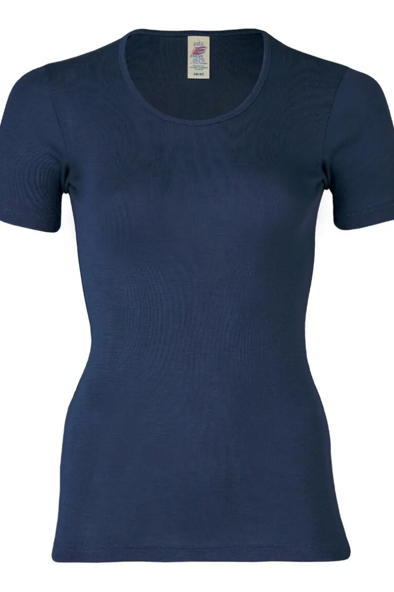 Danefæ Engel Wool Natur Ladies Shirt SS Navy Blue | Dame Undertøj | T-shirts