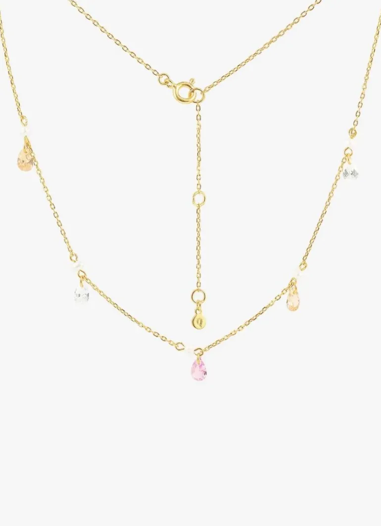 Sterling sølv forgyldt med 18 karat guld, ferskvandsperler og cubic zirconia.Længde: 41cm + 5cm flex