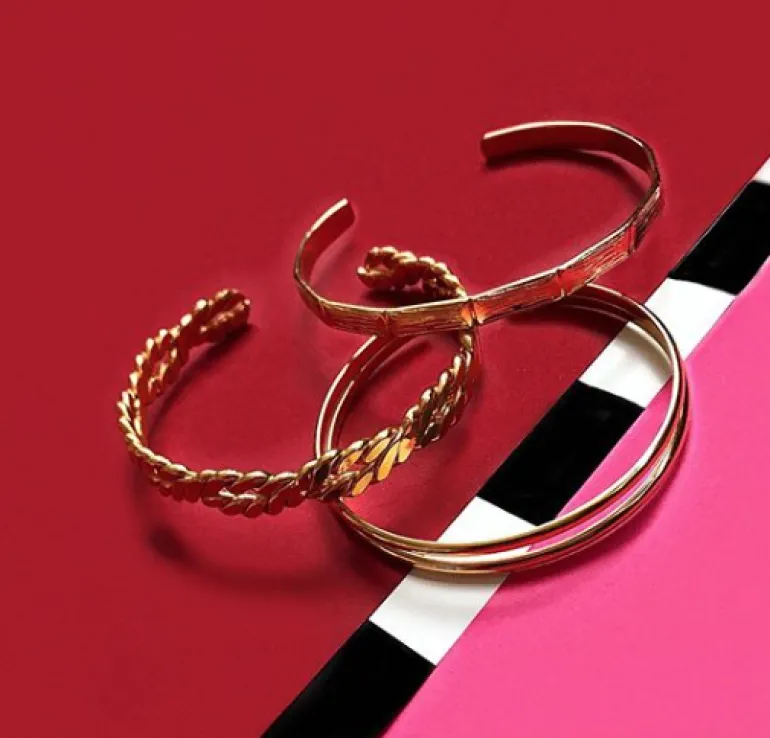 Doublo bracelet with two rings is a stylish simple designMaterial: Brass base. Plated with sterling silver or 24-carat g…