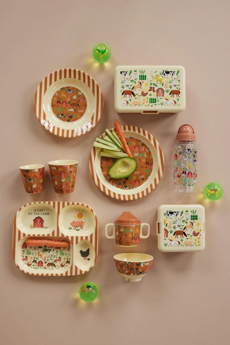 Danefæ Rice Lille Madkasse Brown Farm Print | Børn Rice | Drikkedunke Og Madkasser