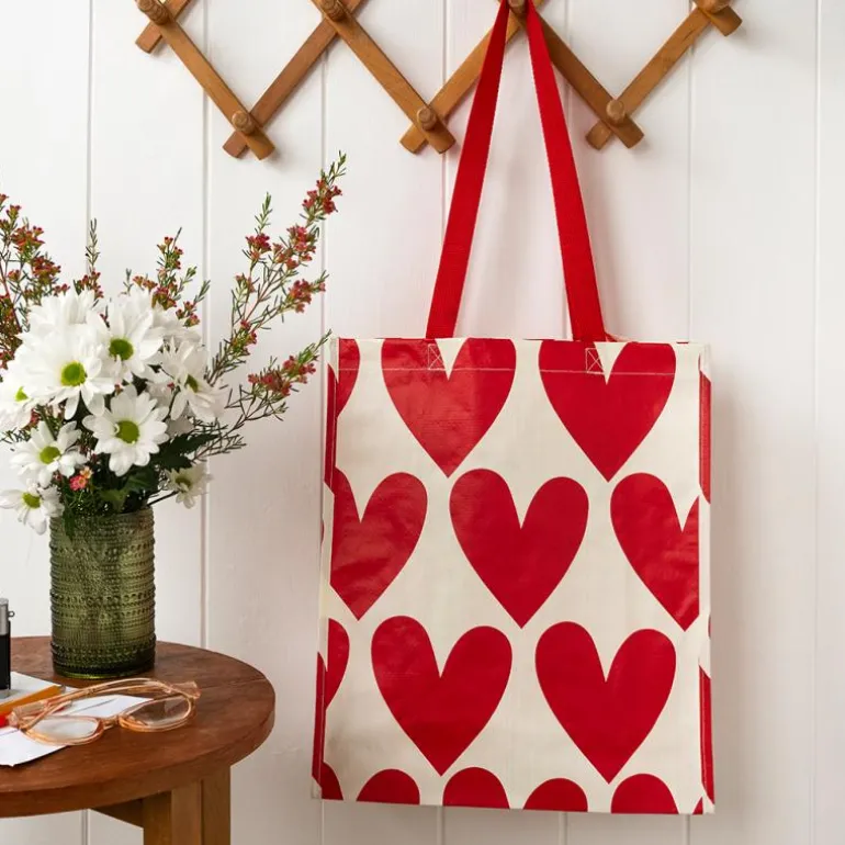Love the planet with this reusable shopping bag, made from recycled materials. Featuring a fun heart print, this bag is a fantastic alternative to single-use plastic bags. Lightweight yet strong, with handles long enough to go on your shoulder, this reusable shopping bag is perfect for the weekly shop.
