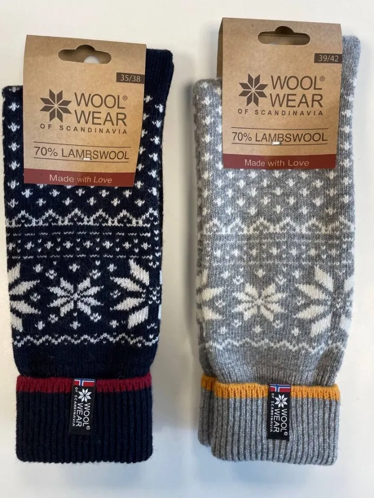 Fast kvalitet i uldsokker med god længde og ombukket ribkant på 6 cm. med flot lille vævet flag fra WOOLWEAR of Scandinavia®, og flot label af recycl. brunt carton.